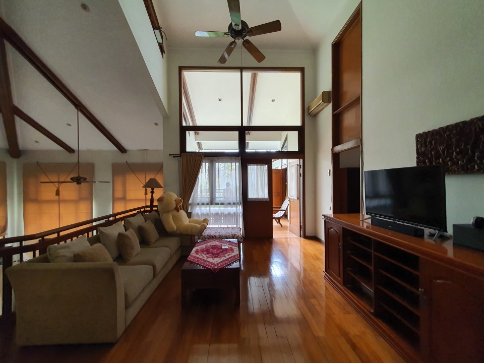 High Ceiling dgn nuansa villa dominasi kayu, homey.