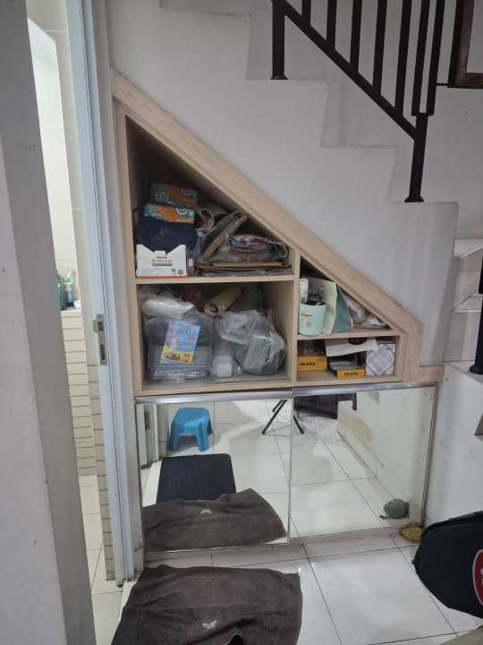 Ada kitchen set, lemari bawah tangga, kompor tanem