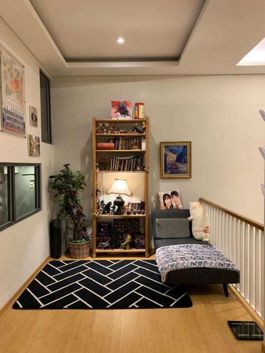 * Ruang santai + rak buku + Sofa bed