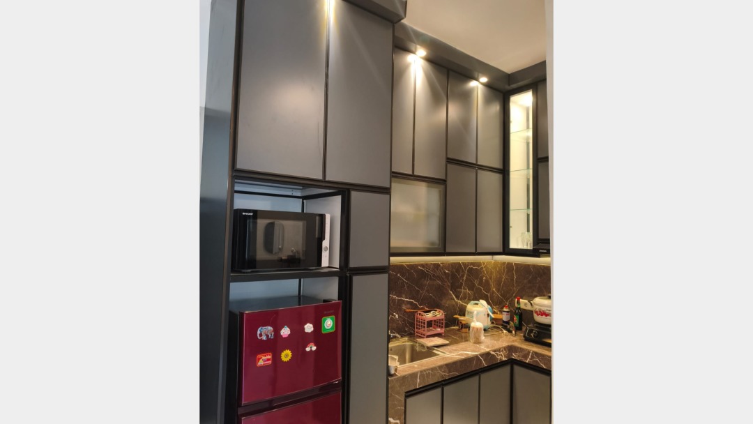 Dapur kitchen set aluminium, ranjang king size, 4 AC,2 water heater, kulkas 2 pintu
