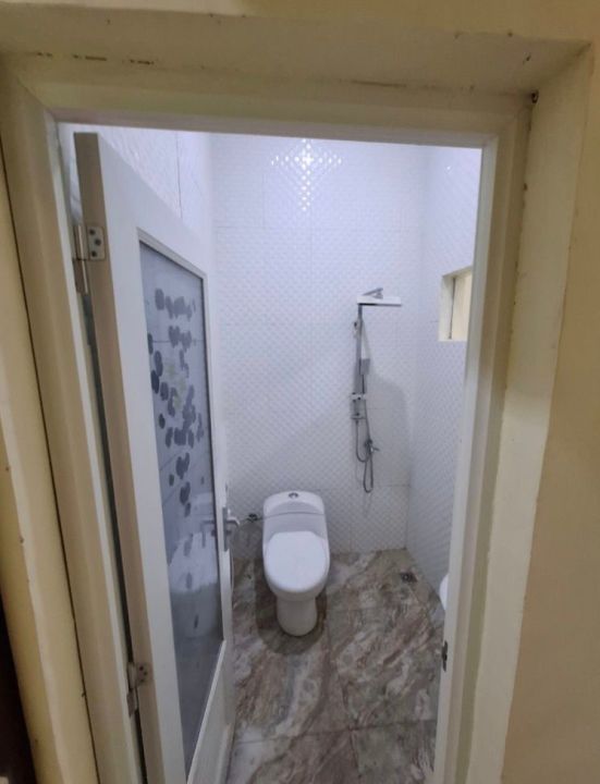 - Kamar mandi di ruang tamu dengan pintu kamuflaze style.
