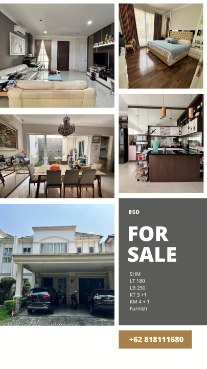 Tersedia rumah eksklusif di kawasan elit BSD, Tangerang Selatan. Dengan desain elegan, LT 180m², LB 250m², terdiri dari 3 KT & 4 KM. Harga premium: 4,5 Miliar. Akses mudah.
