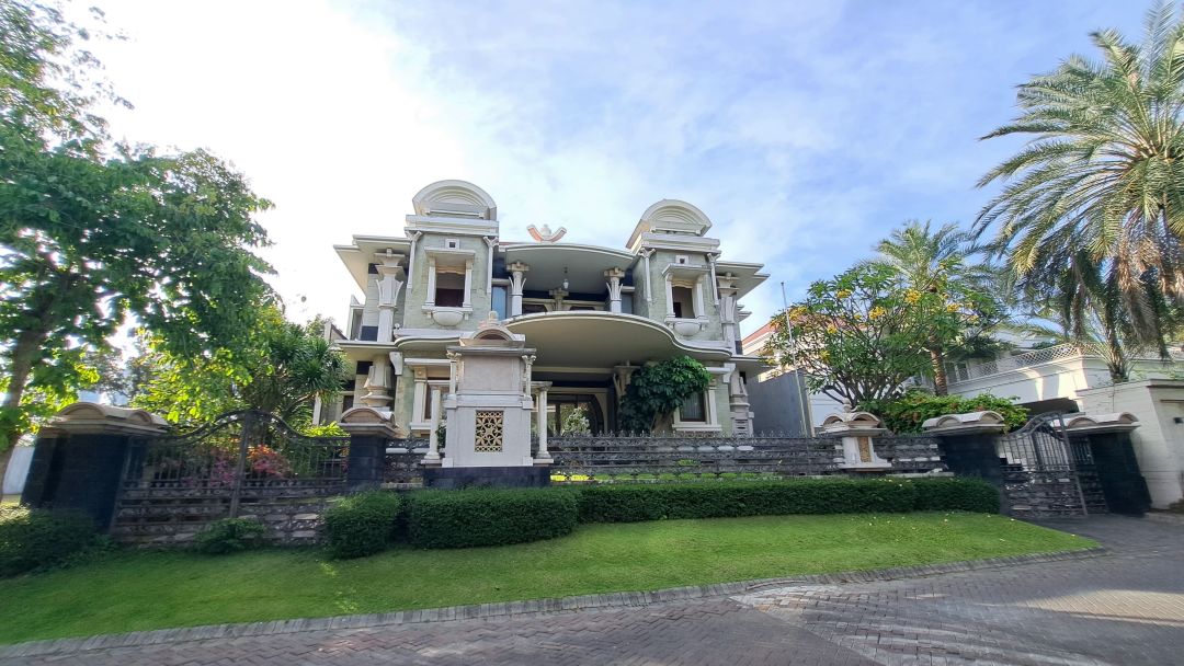 Rumah luxury siap huni di Wiyung, Surabaya. Hunian elit dengan 10 kamar tidur dan 7 kamar mandi, LT 1250m², LB 1600m². Harga eksklusif: 70 Miliar. Fasilitas sekitar lengkap.