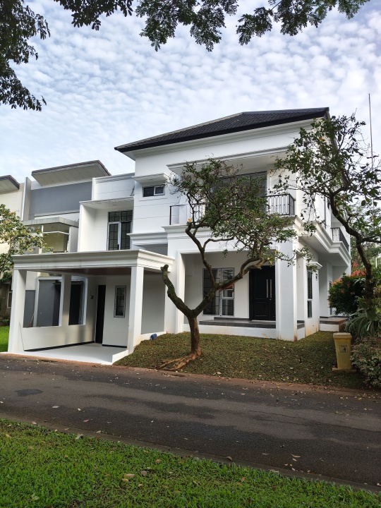 Rumah luxury baru renovasi di BSD, Tangerang Selatan. Hunian elit dengan 4 kamar tidur dan 4 kamar mandi, LT 227m², LB 300m². Harga eksklusif: 7 Miliar. Fasilitas lengkap.