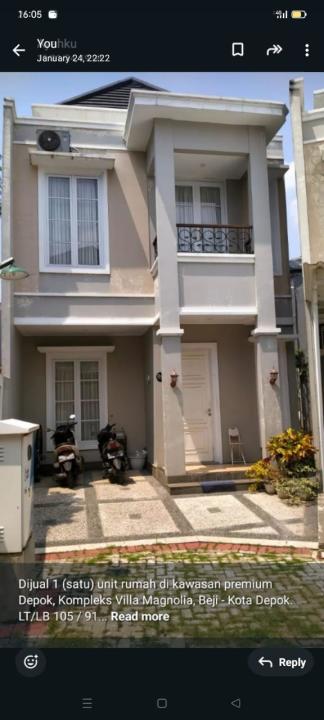 Dijual 1 (satu) unit rumah di kawasan premium Depok, Kompleks Villa Magnolia, Beji - Kota Depok.