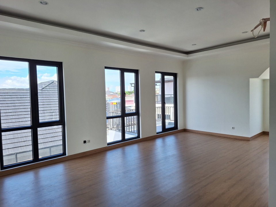 Fitur Unik (Lantai 3): Ruang Entertainment Besar (sekitar 45 m^2) dengan Kamar Mandi Dalam, bisa difungsikan sebagai Kamar Tidur Utama ekstra atau Ruang Hobi.