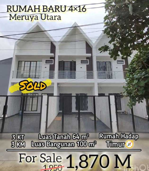 Rumah nyaman di lokasi strategis Meruya, Jakarta Barat. Dengan 3 KT dan 3 KM, LT 64m², LB 100m². Harga terbaik 1,87 Miliar. Dekat fasilitas umum.