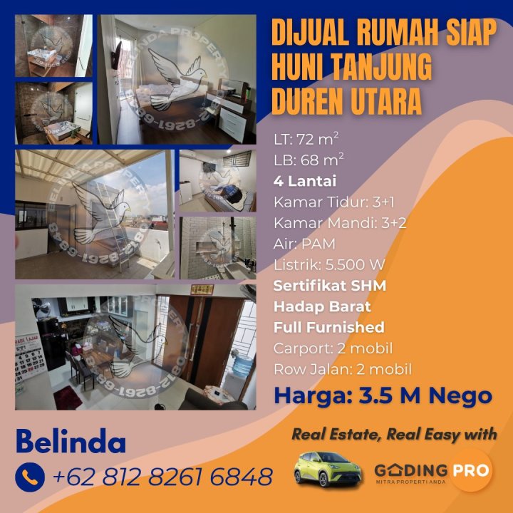 Penawaran istimewa memiliki rumah elit di Tanjung Duren Utara, Jakarta Barat. Luas tanah 72m², bangunan 68m², 3 KT & 3 KM. Harga terbaik di kelasnya: 3,5 Miliar. Dekat pusat kota dan fasilitas premium.