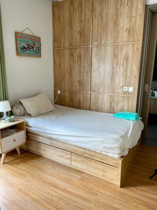 Semi furnished: AC, water heater, kitchen set, wardrobe
