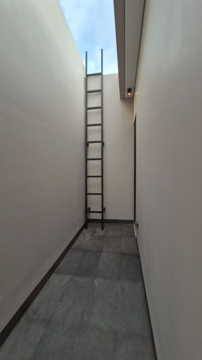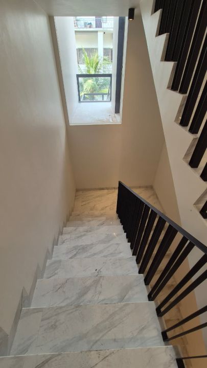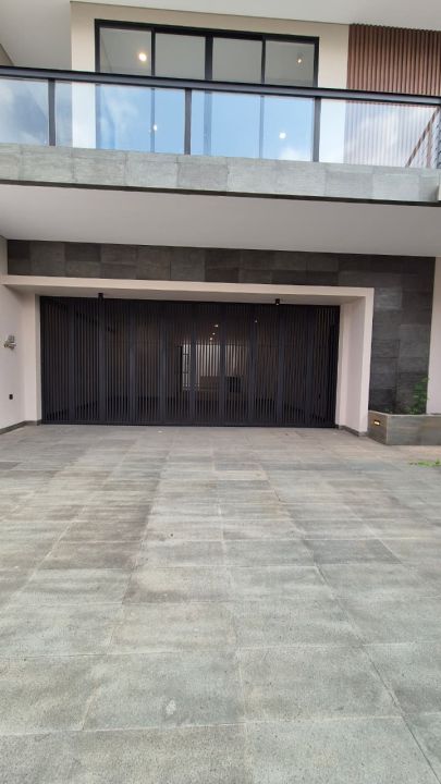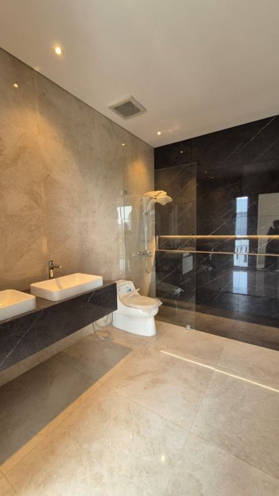Lantai dasar : carport 2 mobil + garasi 2 mobil (total 4 mobil), 2 gudang, 2 KT ART, laundry area, dapur kotor