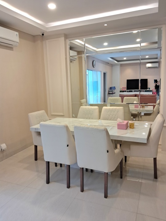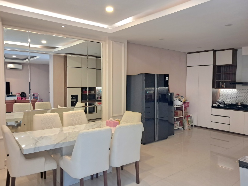 Ac 5 unit, Water heater 2 unit, Kitchen set, Cooker hood, kompor 2 tungku, Lemari pakaian setiap kamar, meja rias lemari tas, meja komputer, gordyn (onna) credenza tv, lemari sepatu, meja kerja di kamar utama