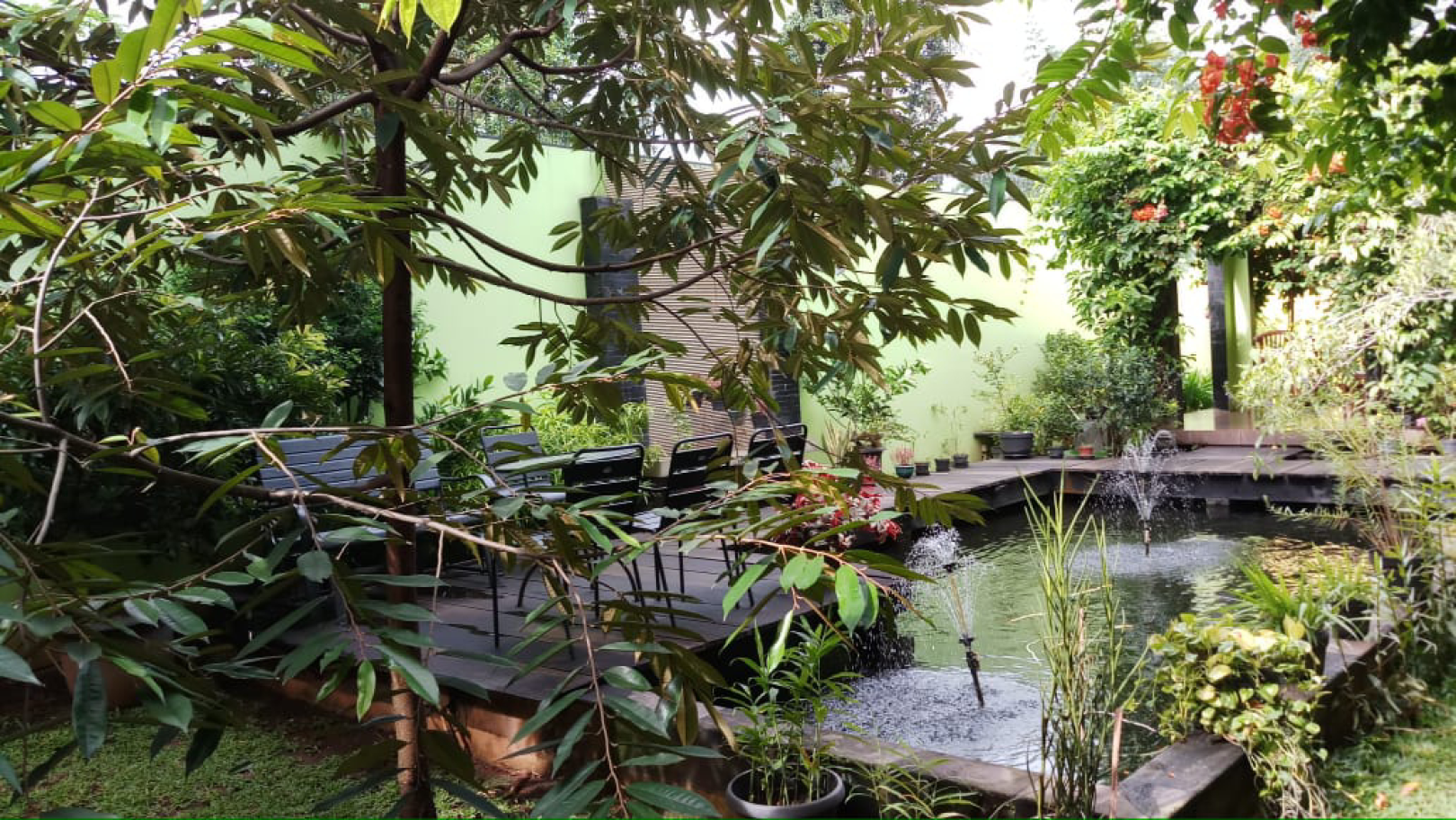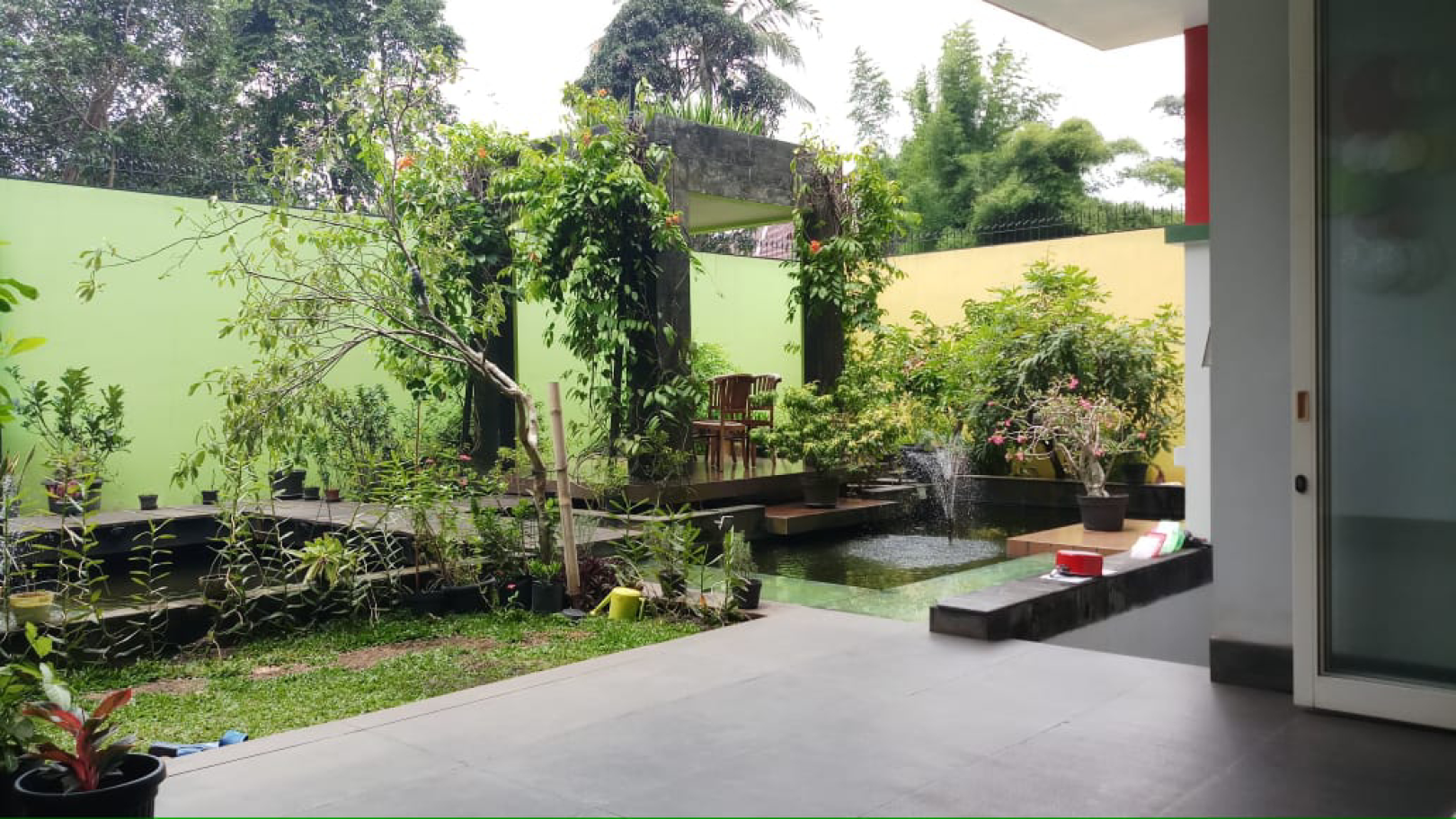 2 kolam ikan besar (ikan koi impor), dengan air mancur yang bagus, lantai marmer impor,