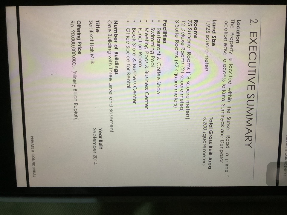 Dijual Hotel bintang 3 di Bali. tanah 1.925m2. bangunan 5.200 m2. Lokasi Strategis .