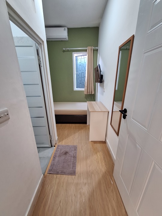》Furniture tiap kamar: Dipan, Ranjang, Gorden, Lemari PVC, Meja dan Kursi Kerja, Cermin besar, Nakas (deluxe).