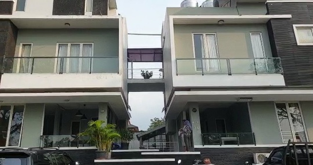 2 Rumah Gandeng , ada jembatan antar 2 rumah ini di lantai 2.