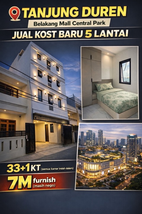 Dijual kost baru 33KT strategis dekat Mall Central Park, Tanjung Duren-Jakarta Barat