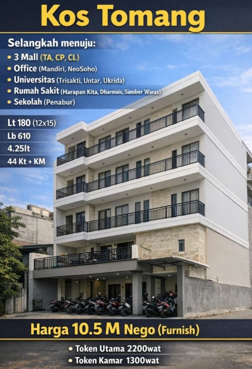 KOST TOMANG BARU 4,25 LANTAI FULL FURNISHED STRATEGIS BEBAS BANJIR READY JUNI 2027