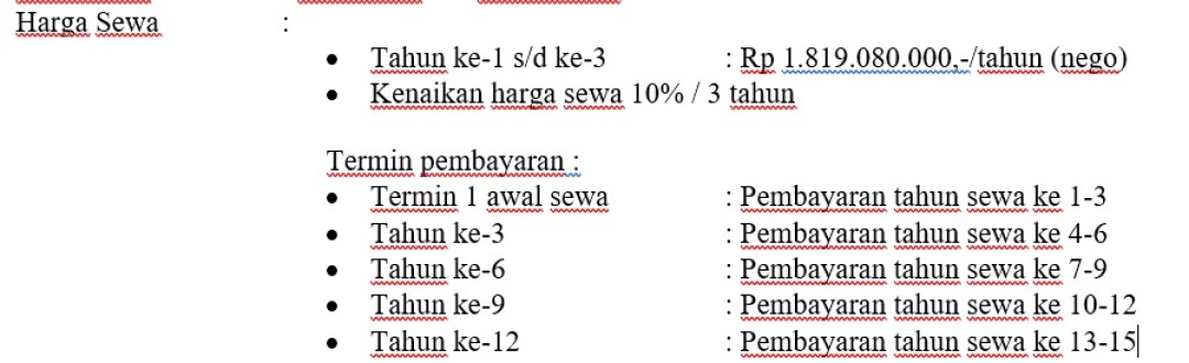 Harga Sewa 1.819.080.000/thn
