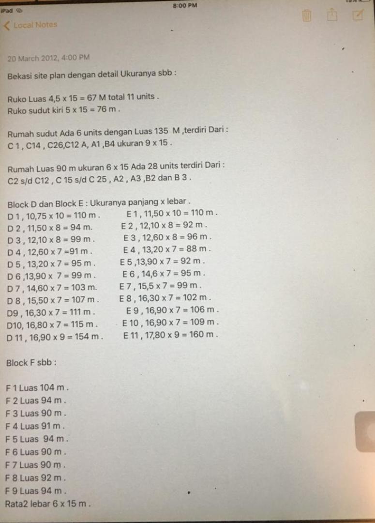 b. 65 units rumah ukuran 6 x 15 m2 besar 90-110 m2