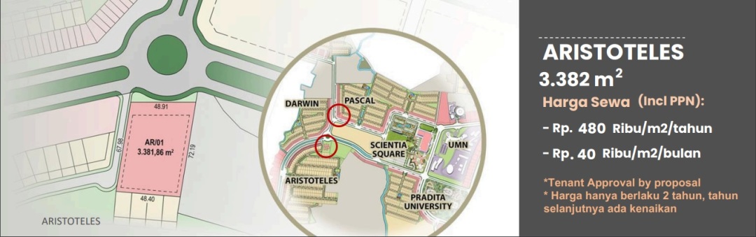 Harga Sewa : 480rb/m2/tahun atau 40rb/m2/bulan