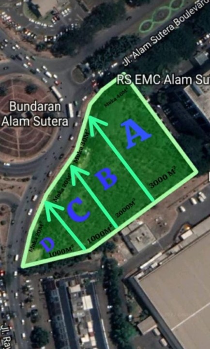 Disewakan tanah prestisius di pusat Tangerang, kawasan Alam Sutera. Luas 8000m². Tanah incaran. Harga sewa premium 38,4 Triliun/tahun.