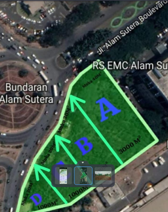Disewakan tanah prestisius di pusat Tangerang, kawasan Alam Sutera. Luas 8000m². Tanah incaran. Harga sewa premium 4,8 Miliar/tahun.