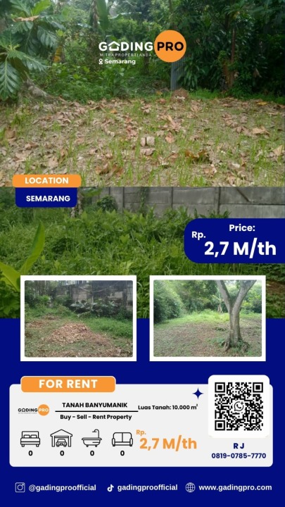 Lease tanah mewah di area Semarang, tepatnya di Banyumanik. Lokasi prestisius dengan potensi tinggi. Harga sewa 2,7 Miliar/tahun.