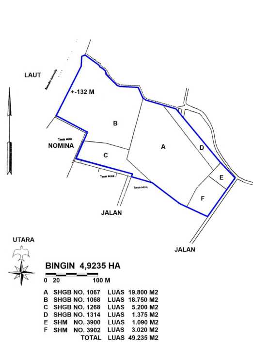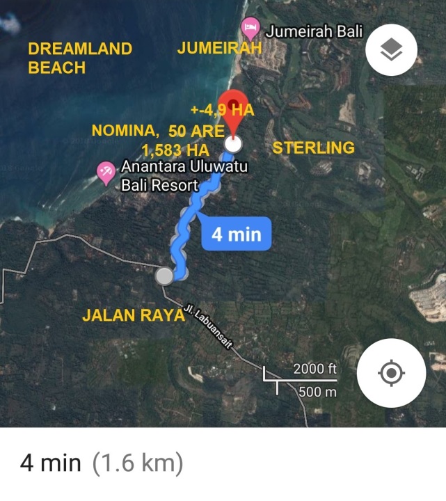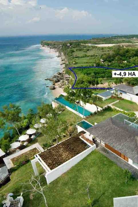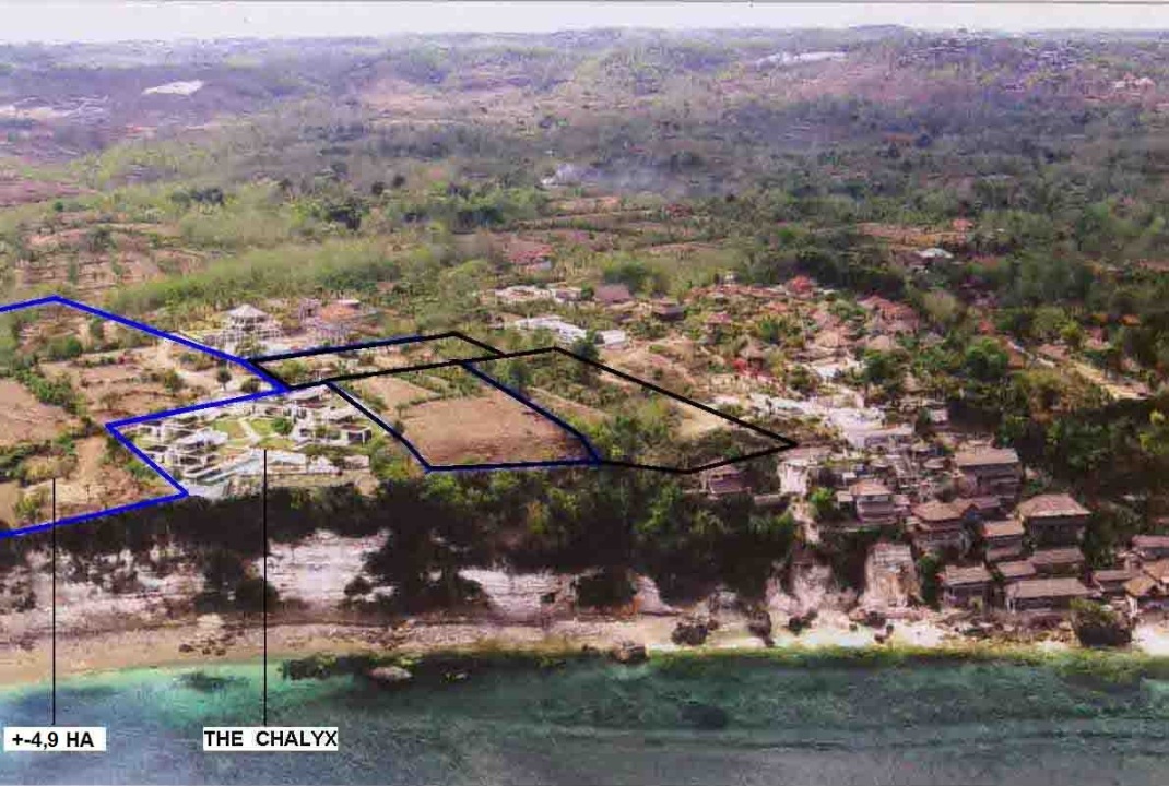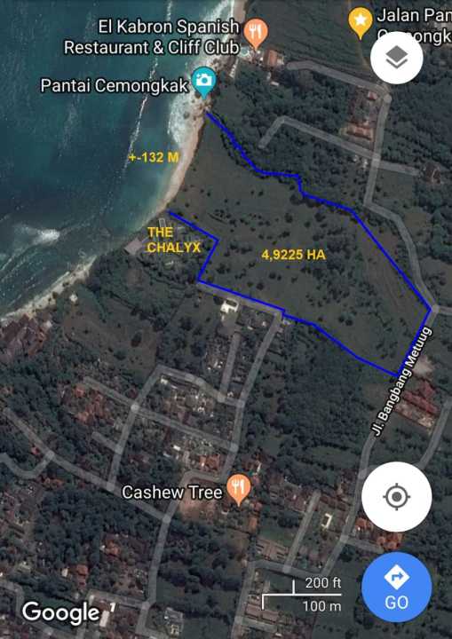Tanah Tepi Tebing Pantai Cemongkok dengan View Laut Luas 49.225 m2 SHM Akses jalan 7m aspal Lokasi tepat di bibir tebing/laut Menempel utara Villa The Calyx Berdekatan dengan Pecatu Indah Resort Aspek ITR Akomodasi Wisata Harga 880jt/are