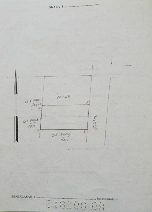 Luas Tanah : 600 m2 / 6 Are