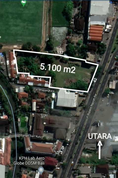 Tanah luxury di lokasi strategis Kuta, Badung. LT 5100m², harga eksklusif 494 Triliun. Lokasi premium, dekat pusat bisnis dan perbelanjaan.