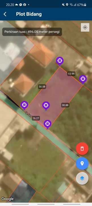 Luas tanah 500 m²
