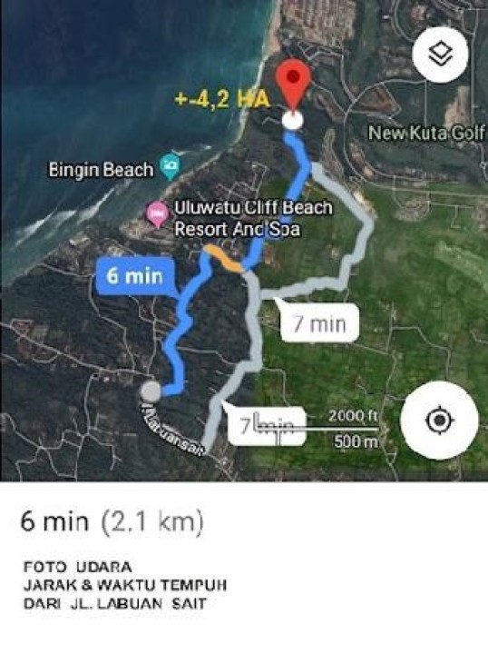 Dijual tanah eksklusif di kawasan elit Pecatu, Badung. Luas tanah 42000m², harga premium 4,72 Miliar. Cocok untuk hunian mewah atau investasi prestisius.