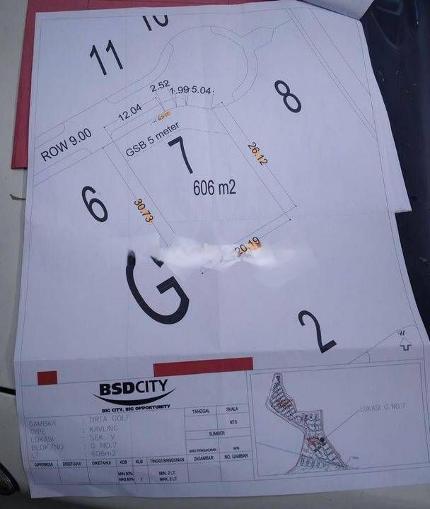 Dijual Tanah kavling blok G7 606 m² di Tirta golf bsd