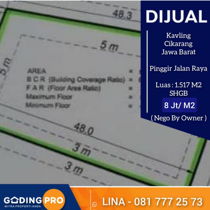 Tanah luxury di lokasi strategis Cikarang, Bekasi. LT 1517m², harga eksklusif 12,1 Miliar. Lokasi premium, dekat pusat bisnis dan perbelanjaan.