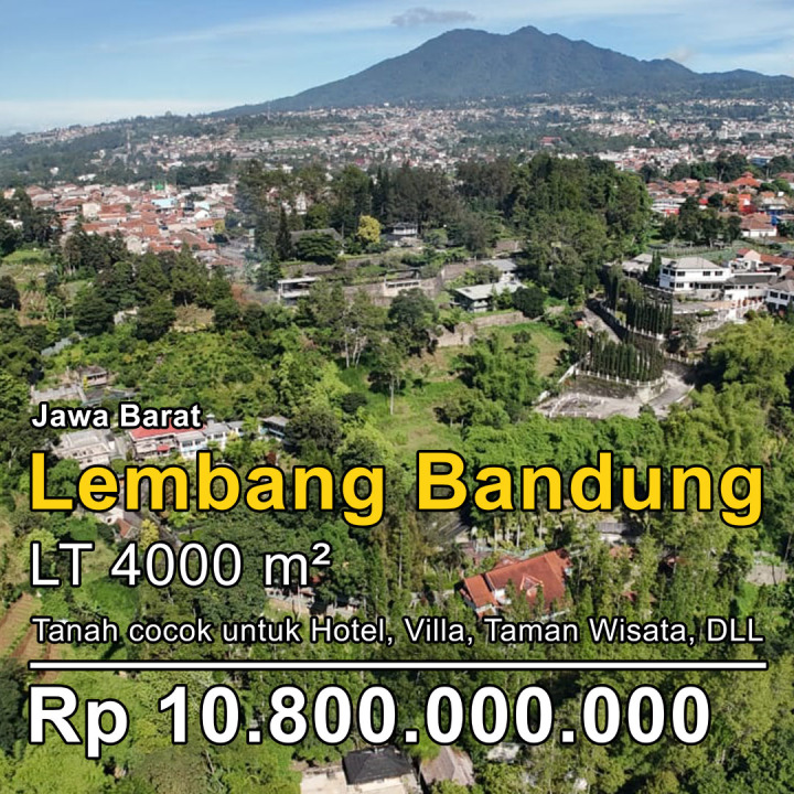 Dijual tanah eksklusif di kawasan elit Lembang, Bandung Barat. Luas tanah 4000m², harga premium 10,8 Miliar. Cocok untuk hunian mewah atau investasi prestisius.