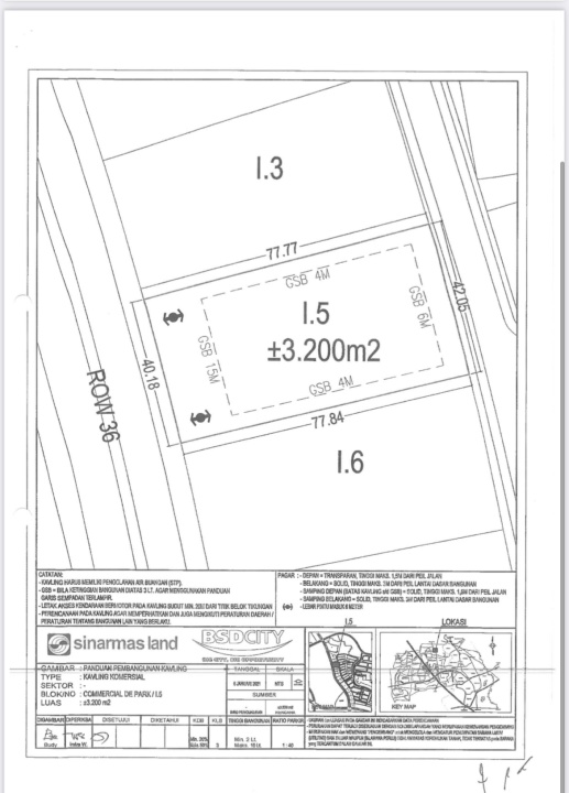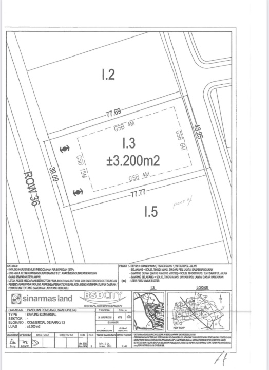 Dijual Kavling Komersial Bsd De Park Blok I ,tangerang Selatan