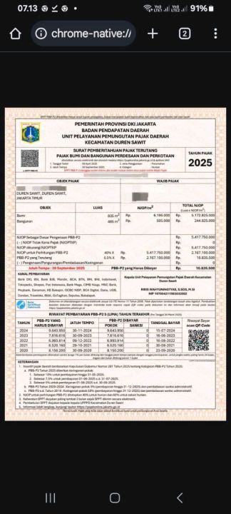 Harga NJOP Tahun 2025 Rp 5,4M
