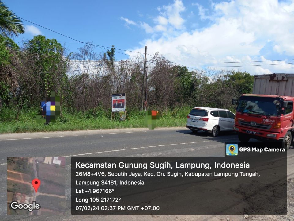 Dijual Cepat dan Murah Tanah strategis di Gunung Sugih (Lampung Tengah ) dengan akses dekat pintu tol Gunung sugih ( -/+ 300m )