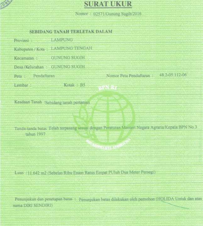 Tanah SHM Dekat Akses Tol di Gunung Sugih, Lampung Tengah