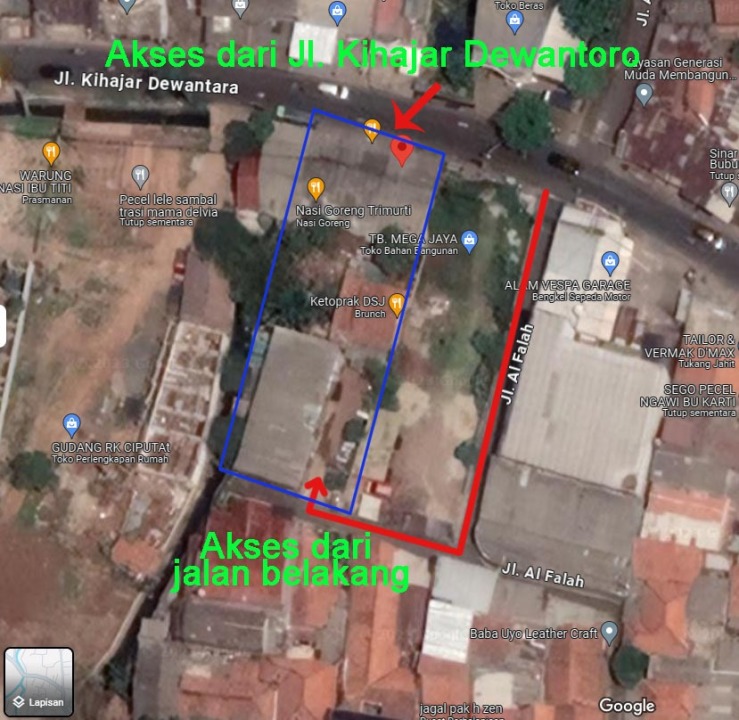 ● Ada akses jalan dari belakang, bisa dua jalan akses (depan dan belakang)