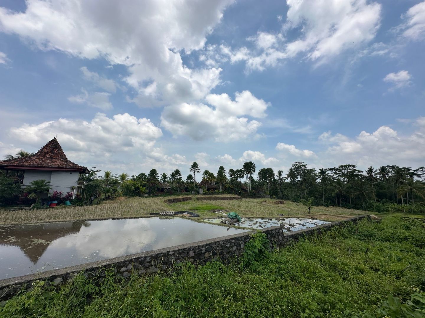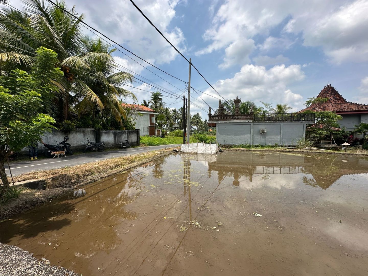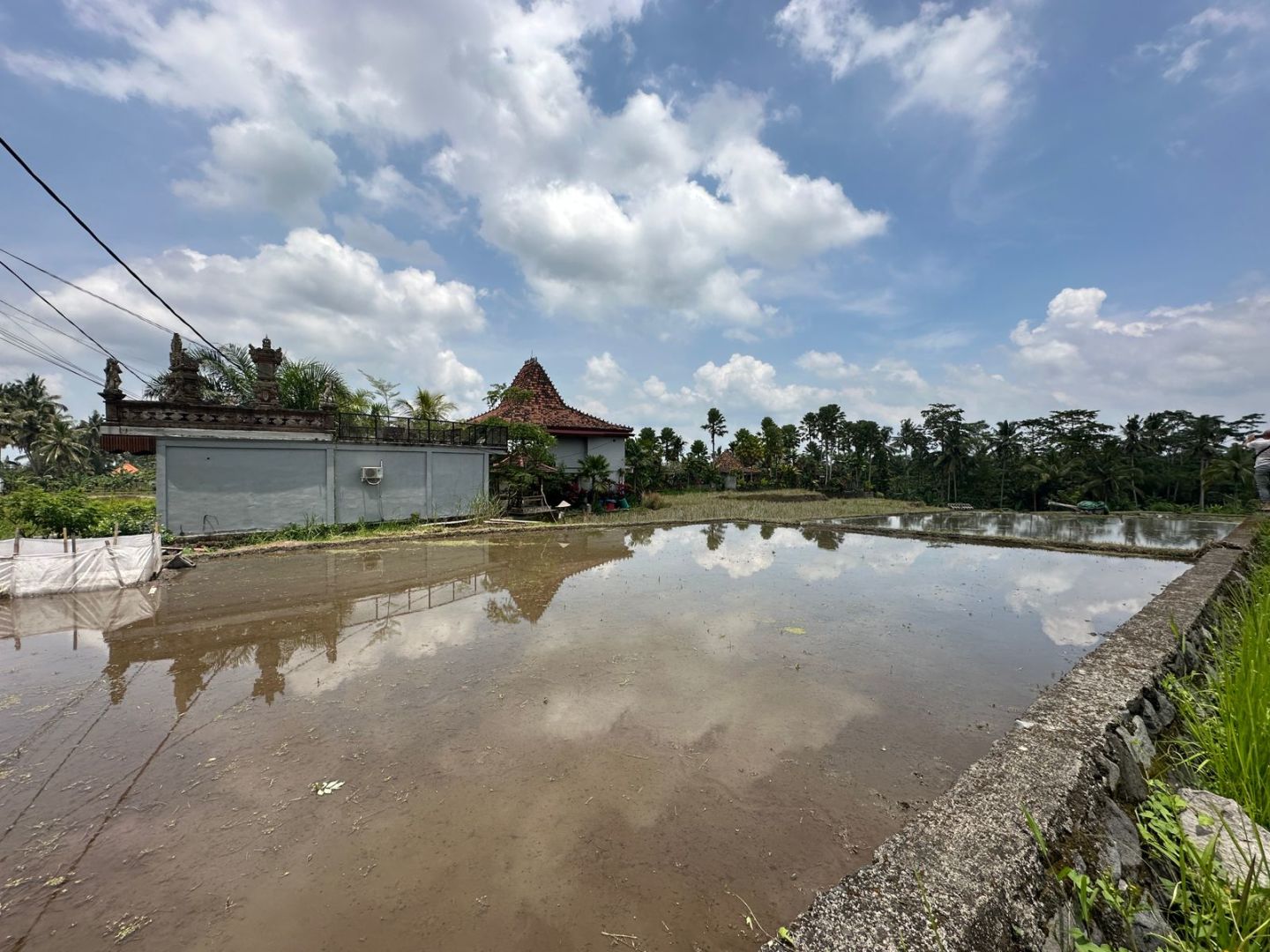 Tanah ini terdiri dari 3 shm, memiliki kontur datar di bagian depan dan terasering di bagian belakangnya. Berada di pinggir jalan aspal dengan lebar 6 meter dan dikelilingi dengan pemandangan sawah di samping dan hutan kecil di bagian belakangnya. Di sekitar tanah ini sudah ada beberapa bangunan vila dan restoran jadi sangat bagus untuk investasi jangka panjang atau vila pribadi.