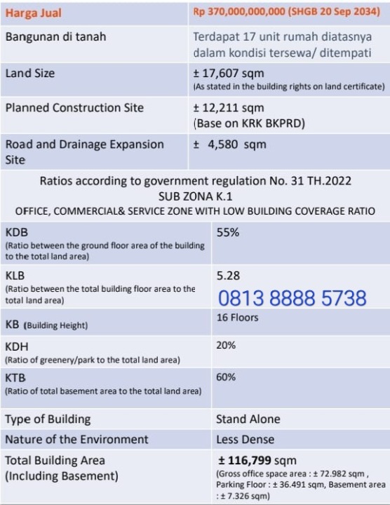 - Sertifikat: HGB - Hak Guna Bangunan