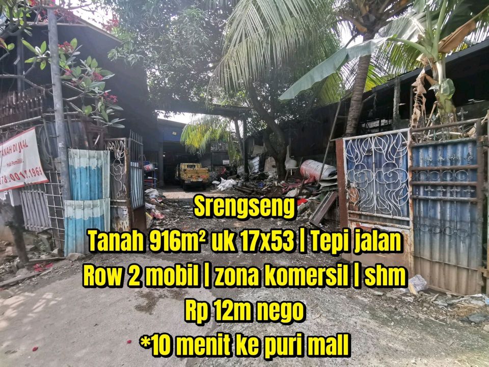 Tanah luxury di lokasi strategis Srengseng, Jakarta Barat. LT 916m², harga eksklusif 10,9 Triliun. Lokasi premium, dekat pusat bisnis dan perbelanjaan.