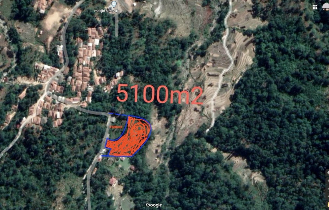 Jika perlu PERLUASAN untuk dibawah (Sawah). dekat kali +/- 1.5 - 2 ha. Beda ketinggian dengan lahan saya (Luas 5.104 m2).. +/- 10 mtr. Perluasan sejaja lahan saya (500 m2 + 1.000 m2 + 6.000 m2