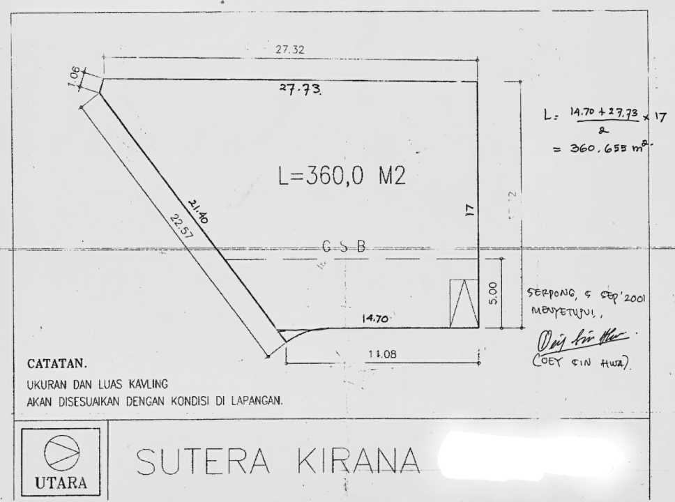 Posisi Hook , Luas 360 m2 (L 14 Dan 27, P22)
