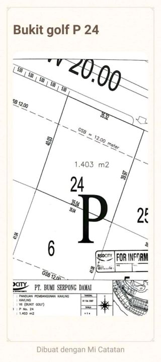 Dijual Kavling Bukit Golf Bsd Lt 1403m² Lokasi Bagus