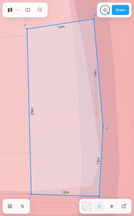 Tanah 385m2 Jalan Utama Canggu Plus Bangunan Toko Posisi Hook