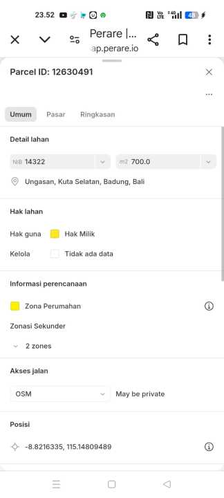 Dijual tanah murah di Ungasan, Badung, luas tanah 700m². Harga terjangkau 49 Juta, cocok untuk hunian minimalis atau investasi.
