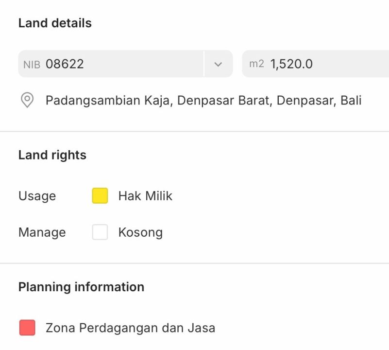 Investasi tanah murah di lokasi berkembang Denpasar Barat, Denpasar, luas 1520m². Harga hanya 190 Juta.