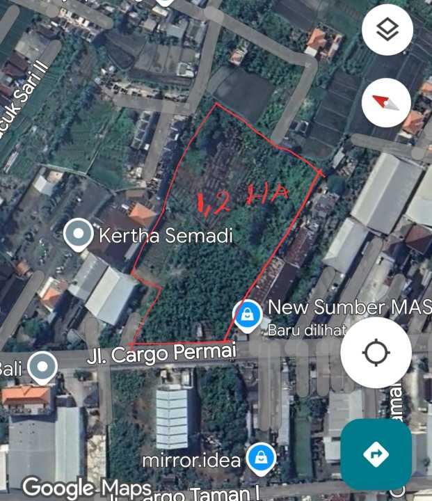 Dijual Tanah 1,2 Hektar Lokasi Jalan Raya kargo Denpasar Barat